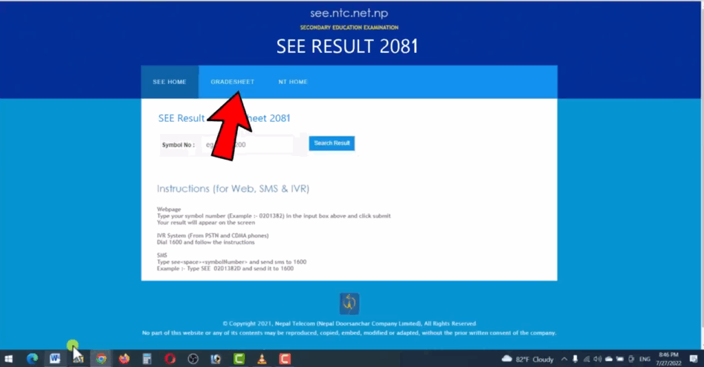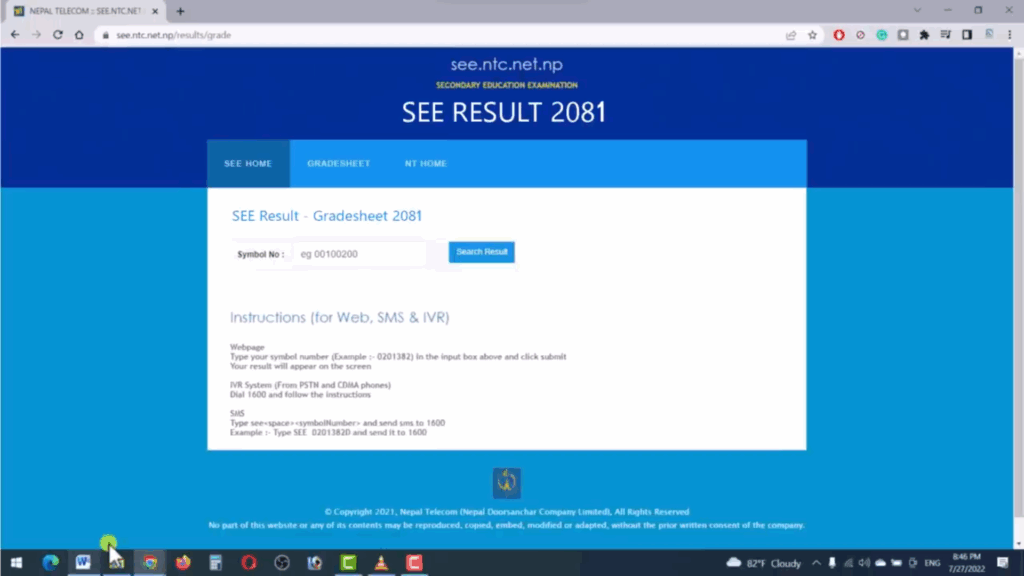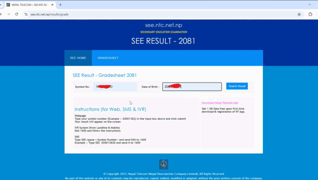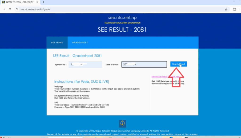 This will take you directly to Nepal Telecom’s SEE result portal.