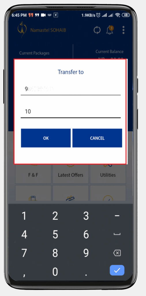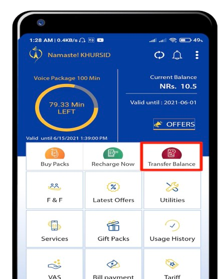 2. How To Transfer balance using Nepal Telecom/NTC Mobile App