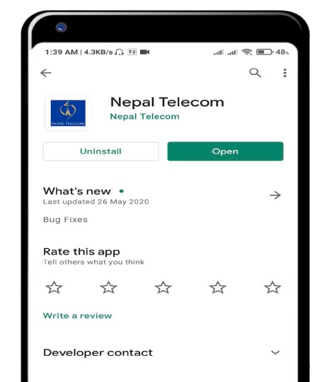 1. Download and Install the Nepal Telecom/NTC mobile app.